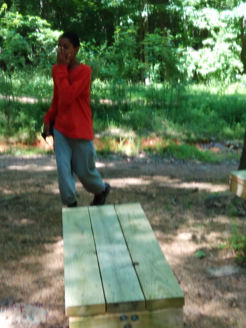 Our second full ARDF course! We had a super fun day. It was sunny and hot in the open but quite a bit cooler in the woods. Five teams went out to search for foxes. In total, we had 11 participants (7 middle school students, 4 family members). All middle schools were invited and we had participants from Culbreth, Phillips, and Smith middle schools. Very exciting. We also had Dale Haiducek (CTE teacher at Phillips) come to support us and learn more about ARDF.