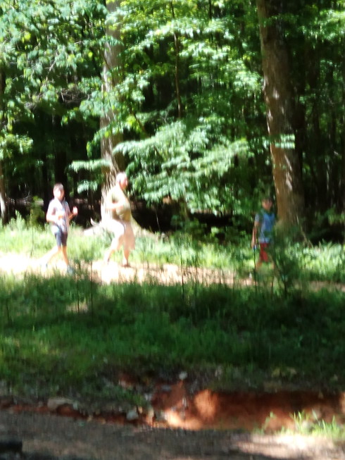 Noah and Ethan making their way from the homing beacon to the finish. They found every fox except for the one that had been transmitting out of sequence.