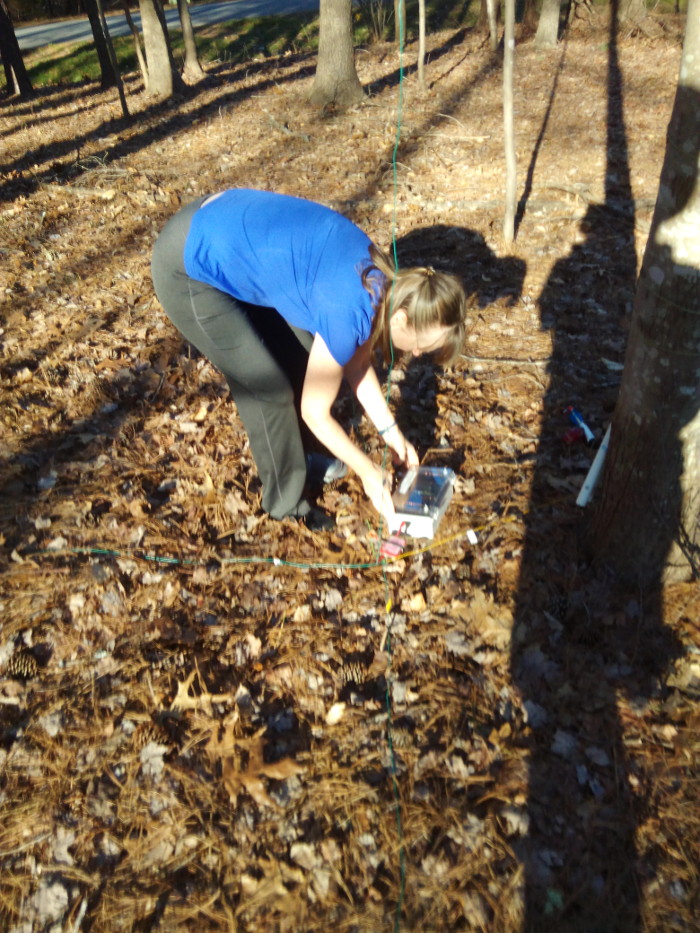 Fig. 3. Patrick listening for the signal by the school (waypoint 45 in Fig. 1).