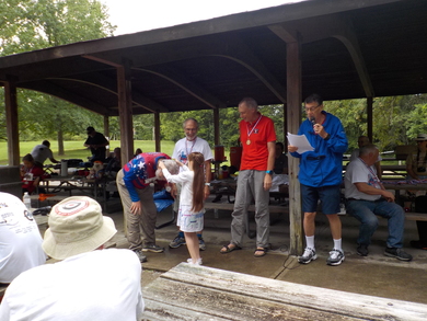 Sometimes the medals get put on before there is a chance to get a "podium picture" - "Too late!".
