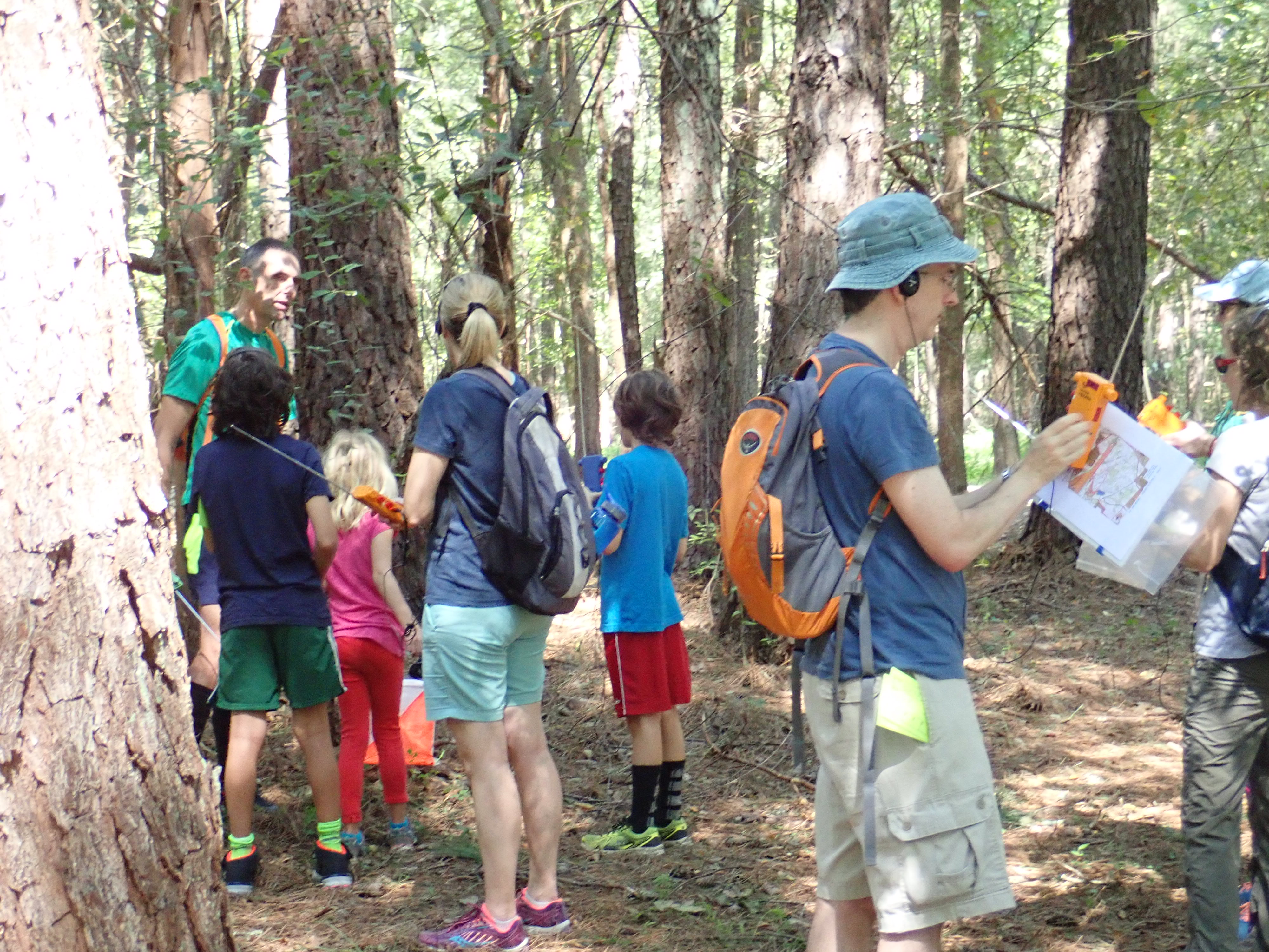 Oliver, Perry, and their mother Phoebe arrived and joined the class. We talked about how to read an orienteering map, how to use the receivers to get transmitter directions, and how the foxes cycle. We then headed out on the course to find two of the foxes.