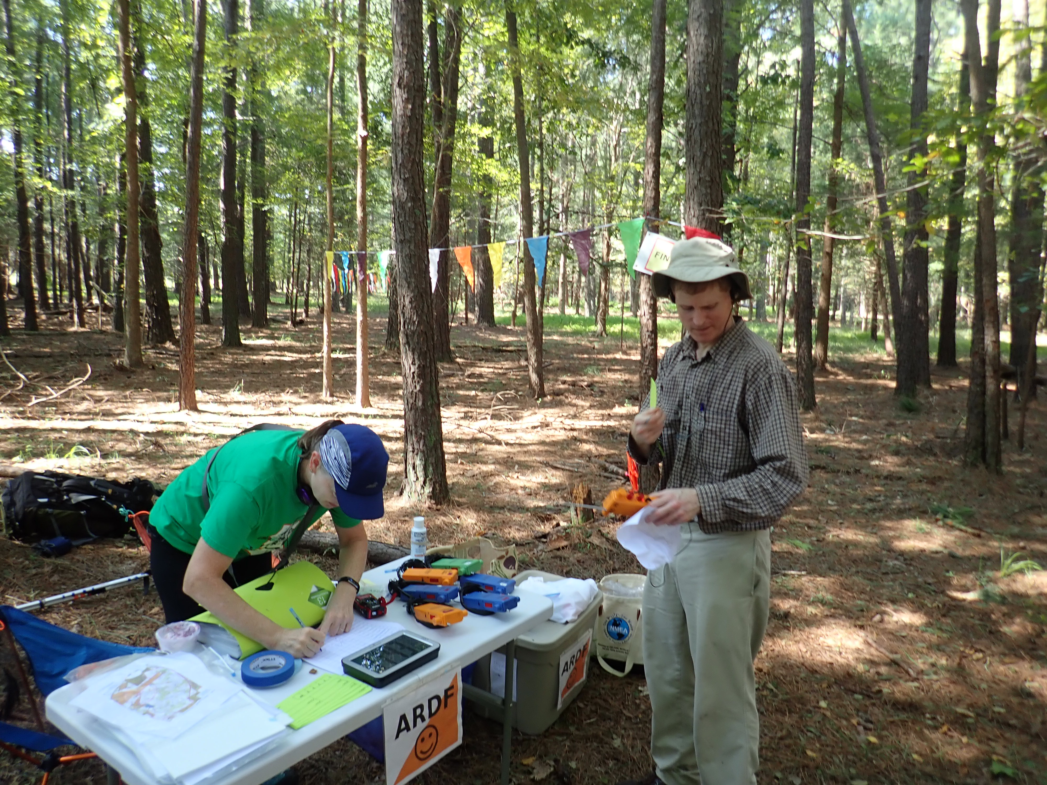 Lillian and April from Chapel Hill High School came to support our event and try ARDF for the first time. Thank you so much guys! After getting their equipment, they got a bit of help from Kelly before catching the tail end of the class. Even with minimal instruction, Lillian and April were super good sports, really understanding, and headed out on the course to search for foxes. After coming back, we looked at the master map together and found that they had passed right by four of the five foxes. So close!!! You guys were really good sports. Hope to see you again!