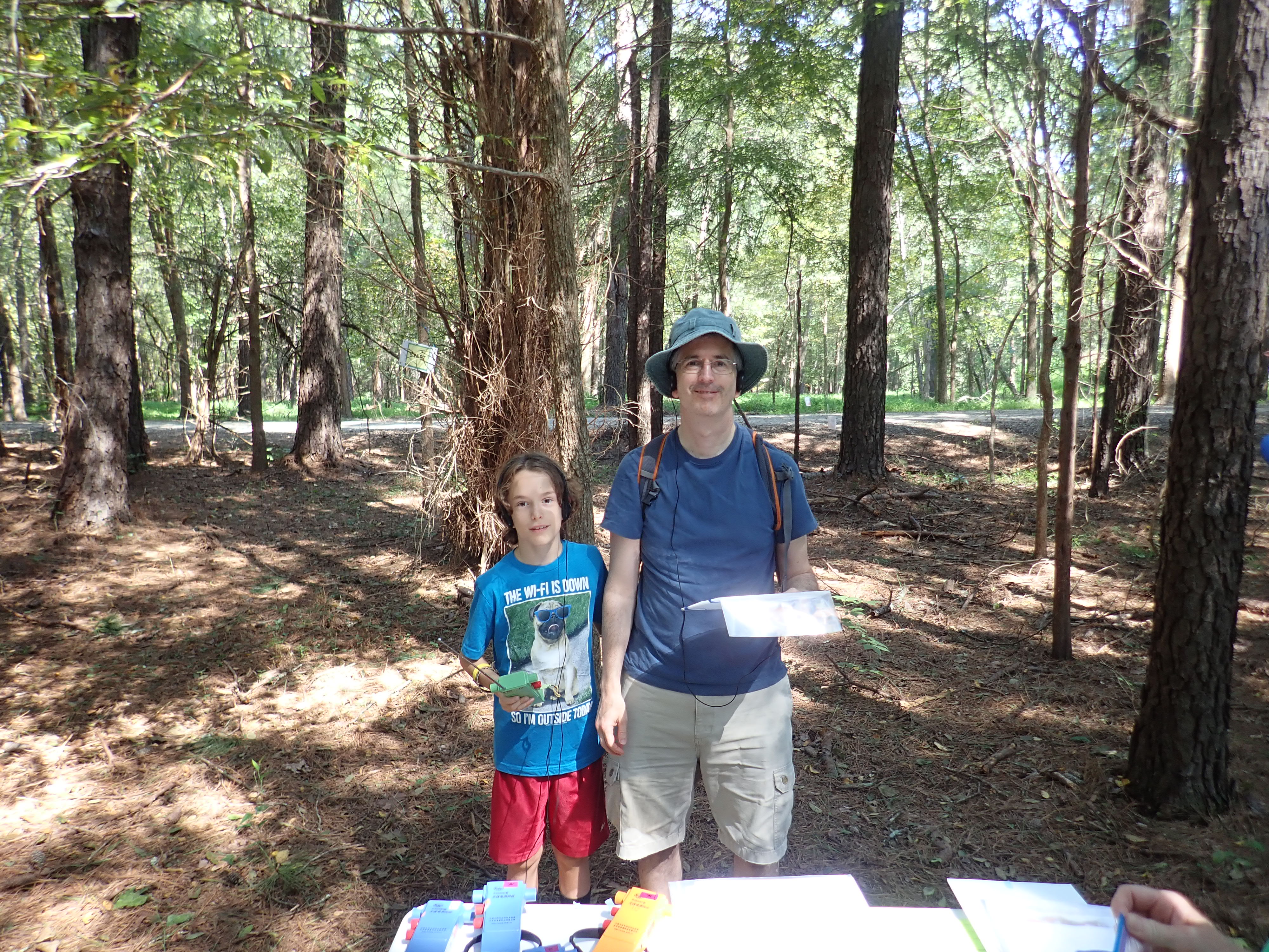 Emmett and his father James arrived next. This was their first time trying ARDF and we started talking about how to run the course soon after they had their equipment. They were used to topographic maps and so concentrated on the fox transmission cycle and how to work the equipment. Our talk turned into the class as more participants arrived. Feeling confident, they decided to go out on their own before the class was over. First time out and they still found four of the foxes. Excellent!